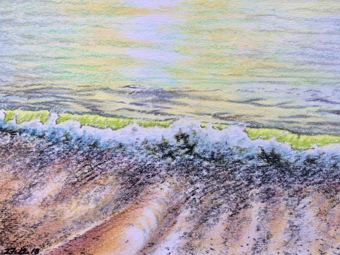 Water’s Edge Mixed media in sketchbook #SaturdayMorning #coast #drawing #artist #ArtistOnTwitter #artistsoninstagram