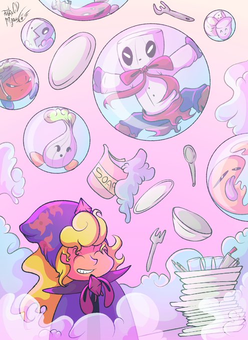 Day 9- October "Cleanse" Gem offered help to clean in the restaurant of the Chef with magic! The Chef has learned to not let her do it again, #cocotober2022 #inktober #inktober2022 #drawingchallenge #octoberchallenge #artprompts #drawingprompts #oc #digitalart