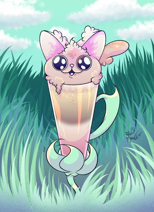 Day 14 - Octuber "Kittens" A new species of Food Buddies has been discovered, they are Cat-ppuccinos, these creatures like to hide in these type of flowers. #cocotober2022 #inktober #inktober2022 #drawingchallenge #octoberchallenge #artprompts #originalcharacter #oc #ocdrawing