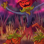 Day 15 - Octuber "Pumpkin" The Pumpkin Harvester marching and guiding some mischievous pumpkin Food Buddies throught the Hollow Pastures. #cocotober2022 #inktober #inktober2022 #drawingchallenge #octoberchallenge #artprompts #originalcharacter #oc #digitalart #DigitalArtist