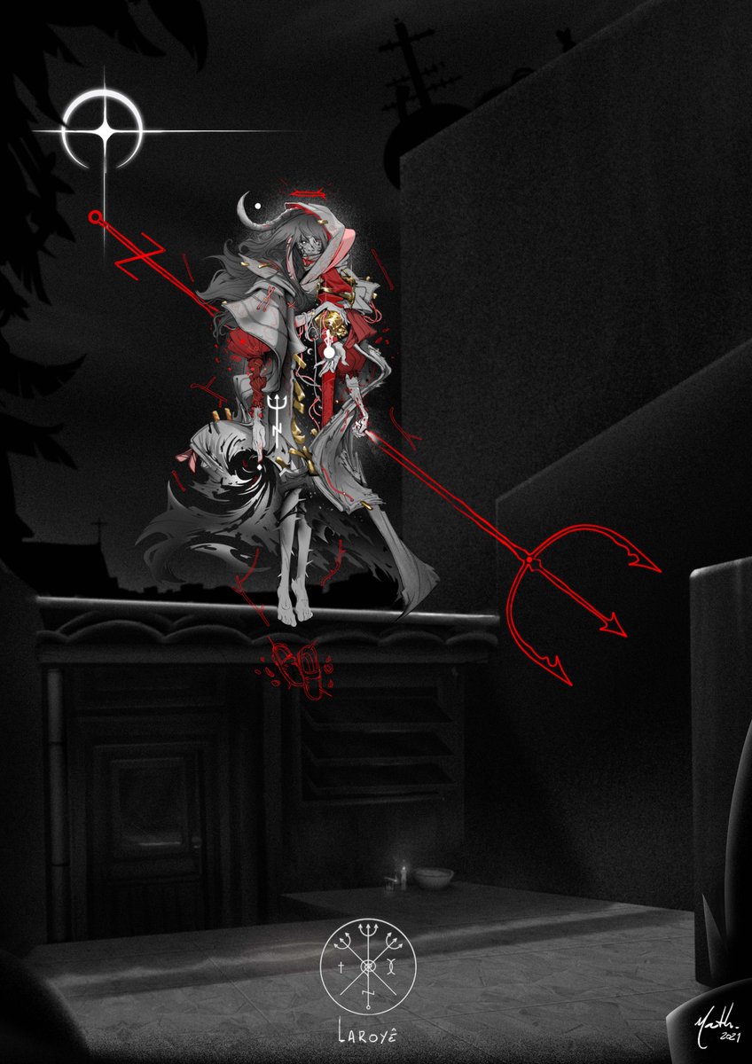 LAROYÊ / #CODEXOBSCURUS We used to smell roses in the backyard but we do not know where this smell came from until I see those eyes, fixed on me Then I said: LAROYÊ as pomba gira Gramma says: If you saw something and it didn't frighten you, then it's there to protect you ♥️