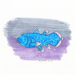 「シーラカンスの森」水彩・アルシュ紙・f6 偶然できた絵の具のシミから発想しながら、空間を作り出しています。#art #watercolor #透明水彩 #イラスト #illustraion #シーラカンス #coelacanth #青 #blue
