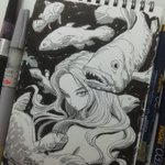 Crocodile Loki is probably my fav TV character of 2021. Did you know #Loki was famous for turning into a fish? The horns are probably a modern invention, though. The prompt was #extinct #Coelacanth, #Boavus #idelmani #ouroboros #fish #fishy #inktober2021 #inktober #art #drawing