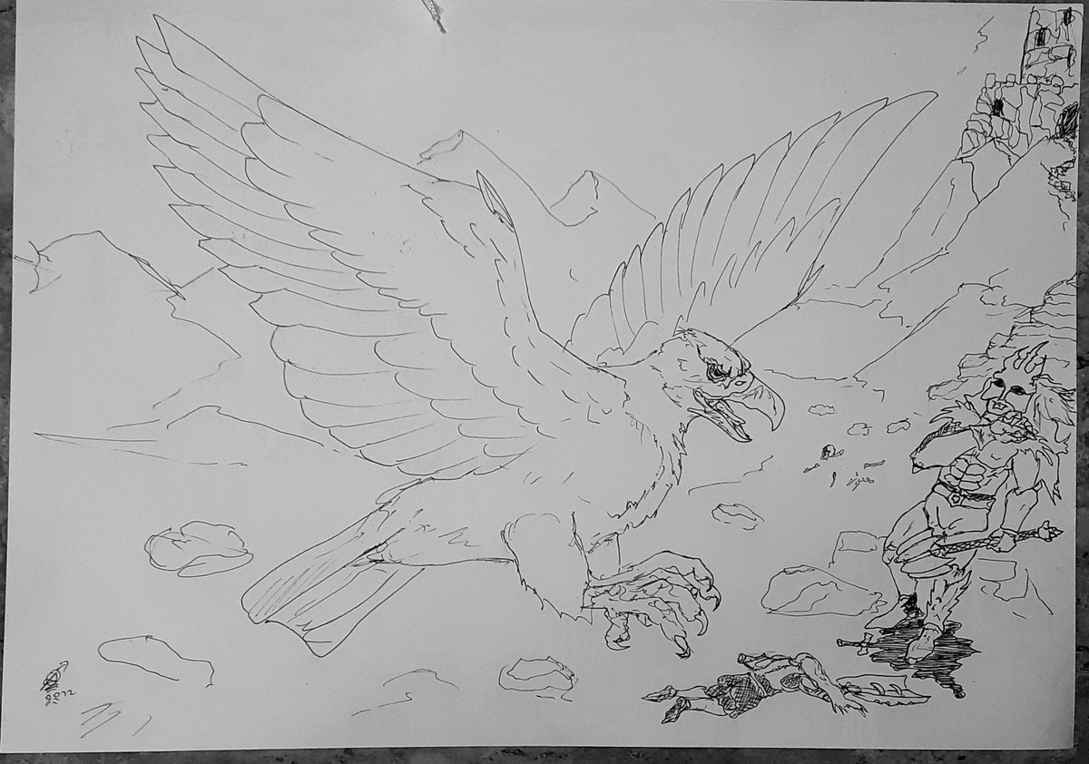 Eu hoje estou o pó da rabiola! Fiz um desenho mais simples pra não deixar de fazer o 11 dia #Inktober #inktober22 #colab55 Em homenagem a JRRT o resgate do corpo de Fingolfin por Thorondor (rei das Águias), após deixar Morgoth coxo e ser morto em combate singular!