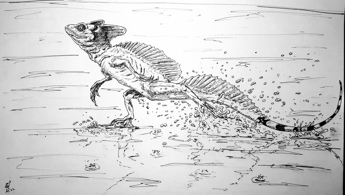 Segundo dia! #Inktober #inktober2022day2 #colab55 #inktober22 Apressar foi o tema! E que é mais apressado na hora da fuga que o Basiliscus basiliscus? Que corre sobre as águas de tão rápido!
