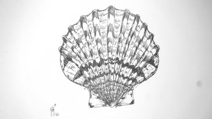 Quarto dia #inktober2022 #Inktober #colab55 Vieira. Moluscos bivalves de conchas lindas! @lucaskias @wtfdriks