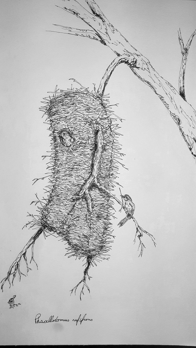 Nono dia do #Inktober #inktober2022 #colab55 Ninho! @lucaskias alinhamos no João, só divergimos no material kkkkk! Ninho de (Phacellodomus rufifrons) João-de-pau. @mairamezza @wtfdriks @Judospassarin @BateBicoPodcast @eupamme