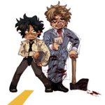 HAPPY HALLOWEEN🎃👿🪓💼 !!! heres my game characters as different horror media they were inspired from !! #eloquentcountenance #coldfrontgame #elevatorhitch #halloween #horrorart #originalcharacter