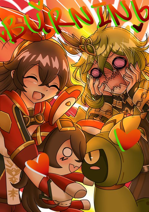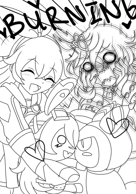 WIP Lineart Amber X Collei Burning Passion #amber #collei #collber #Genshinlmpact #genshinimpactfanart #原神イラスト #原神