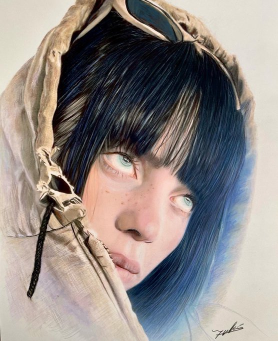 こんにちは😊✨ 今回はビリーを描いてみました🫶🫶🫶 囁きかけるような歌声が凄く大大大大大大大大大大大大大大大大大大大〜好き♡(๑♡ᴗ♡๑) #ビリーアイリッシュ #色鉛筆画 #billieeilish #colorpencildrawing #まきむらゆうこ