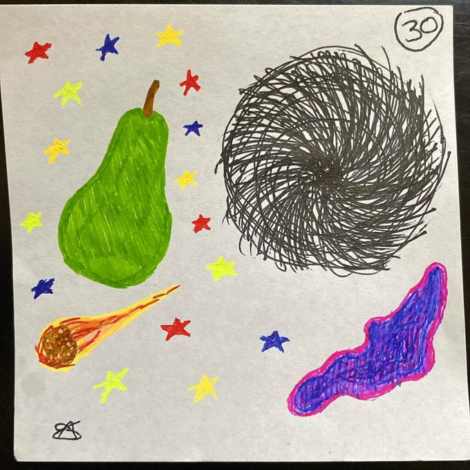 My 30th #inktober #doodle prompt was a piece of fruit in outer space. The #blackhole just looks like scribbles but I’m pretty happy with the #comet and #nebula. Created with @pilotpenusa G2 07s #pilotartober2021 instagr.am/p/CVusgAsFy2q/