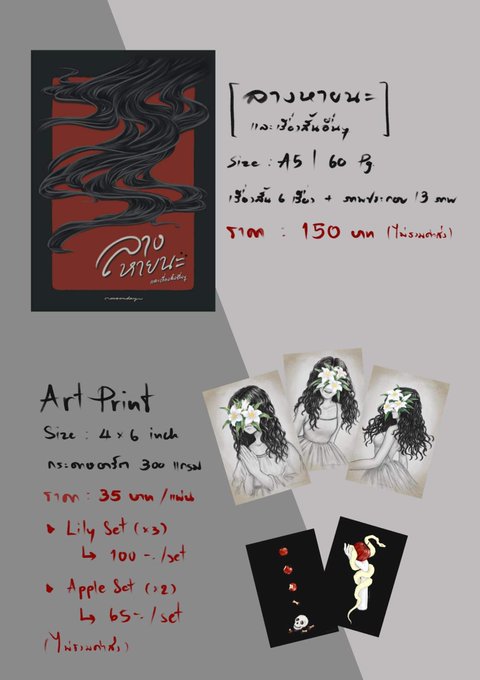 Pls. RT 🙏✨ รอบไปรฯ #ComicAvenue7 มาแล้วค่า - #ลางหายนะ และเรื่องสั้นอื่นๆ - Art Print : The Lily & Fallen Apple - Art print : สวนกระดูก หนังสือมีสต็อคอยู่ 40 เล่ม เปิดรอบไปเรื่อยๆจนกว่าจะไม่มีปัญญาแพคส่งเอง ส่วน art print ค่อนข้างเหลือเฟือ docs.google.com/forms/d/1SZu5J…
