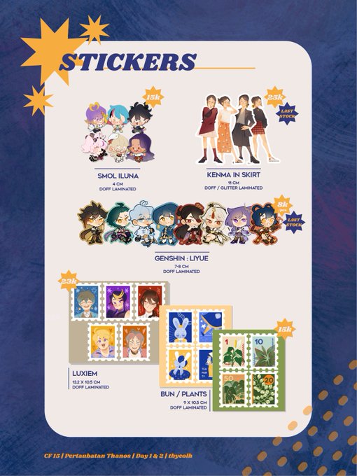 Hello! My catalogue for #comifuro15 is here! 🥳✨ Im also doing a GA. Like & RT to get a voucher for my stuffs 🥳. PO close 18 Sept. Link and more info below if you are interested #comifuro15catalog #luxiem #Genshinimpact