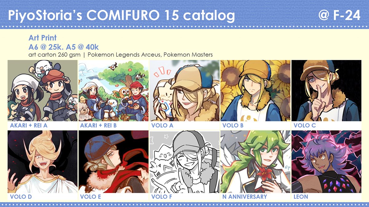 [1/2] [RT❤️] My #comifuro15catalog is ready!! Mostly Pokemon stuff including PLA fanbook, also some Genshin and other prints :> Also terima PO buat diambil di #comifuro15 sampai tanggal 22 ya :> Order form: docs.google.com/forms/d/e/1FAI… #comifuro15catalogue