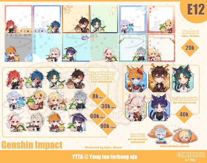 Likes and Share are very appreciated!] Henlo! Kentank Terbang buka order untuk OTS pick-up CF16 🥔PO period : 14 - 22 January 🥔PO form : forms.gle/EDyo1pGyfqzKNx… #CF16 #comifuro16 #comifuro16catalogue #comifuro16preorder #原神 #GenshinImpact