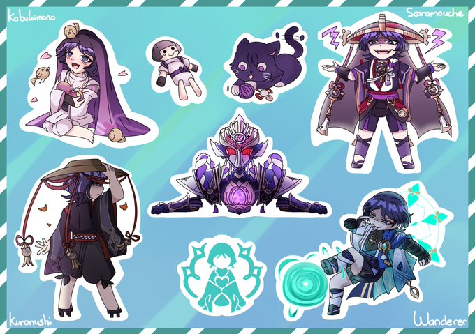 Here is a closer look at the Wanderer sticker sheet I'll be selling at CF16! I highly recommend PO because there's only a limited amount available on the spot ☺️ Link: forms.gle/oT9uHUUov74Cf8… #Genshinlmpact #wanderer #comifuro16 #原神イラスト #原神 #comifuro16preorder