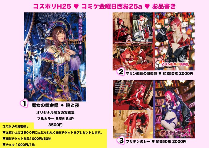 コスホリ/コミケの新刊が出来上がりました❗️ 今回新刊は3種類あります✨ ✨オリジナル魔女写真集🧙🏻♀️ ✨マリン船長のコスプレROM ✨妖精騎士トリスタンのコスプレROM そして今回も福袋を用意しました‼️ 中身は旧刊三点で3000円です✨旧刊を見逃した方にお得ですよ😚 よろしくね💕 #コミケ99 #comiket99