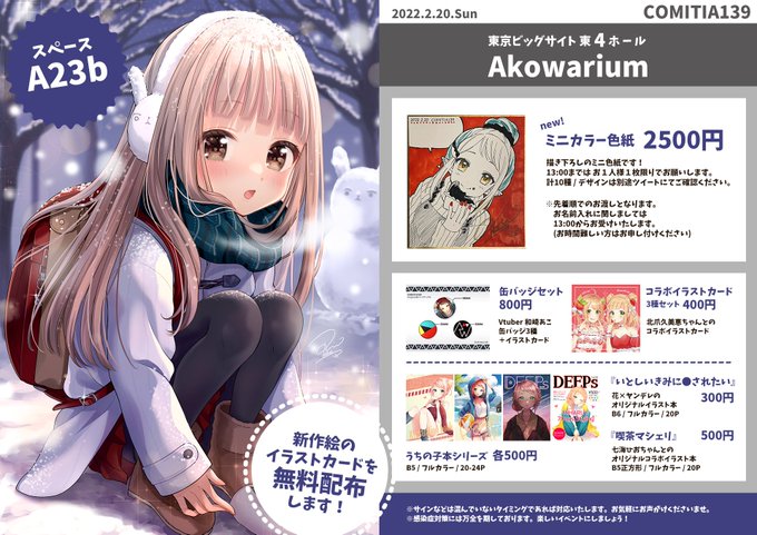 コミティア139のお品書きです! 新作絵のイラストカード無配しますので よければ【A23b】にお立ち寄りください✨ 色紙のサンプルは朝にアップします💪🌞 #COMITIA139 #COMITIA