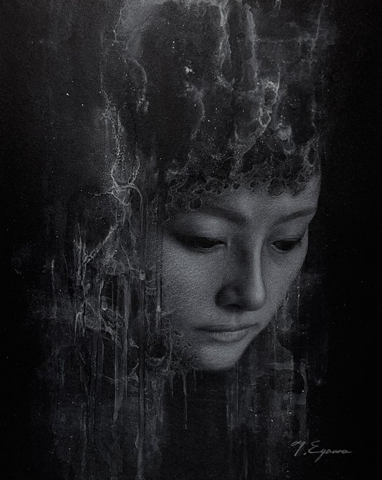 New piece! ‘Untitled 11’ Year of Completion : February 12, 2023 Medium : White Pencil, Black Paper, Cradled Wood Panel, White pencil powder form Size : 273x220mm/10.75x8.66 in Model by Nanami More info : linktr.ee/Toshihiroegawa #darkart #pencilart #portraitart #comtemporaryart