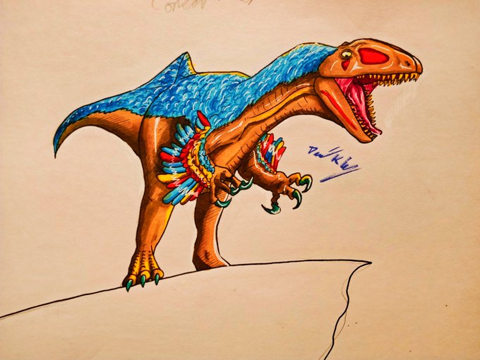 Today I forced myself to somehow finish the old drawing. This is my concavenator from the game #PathOfTitans . #paleoart #dinosaur #concavenator