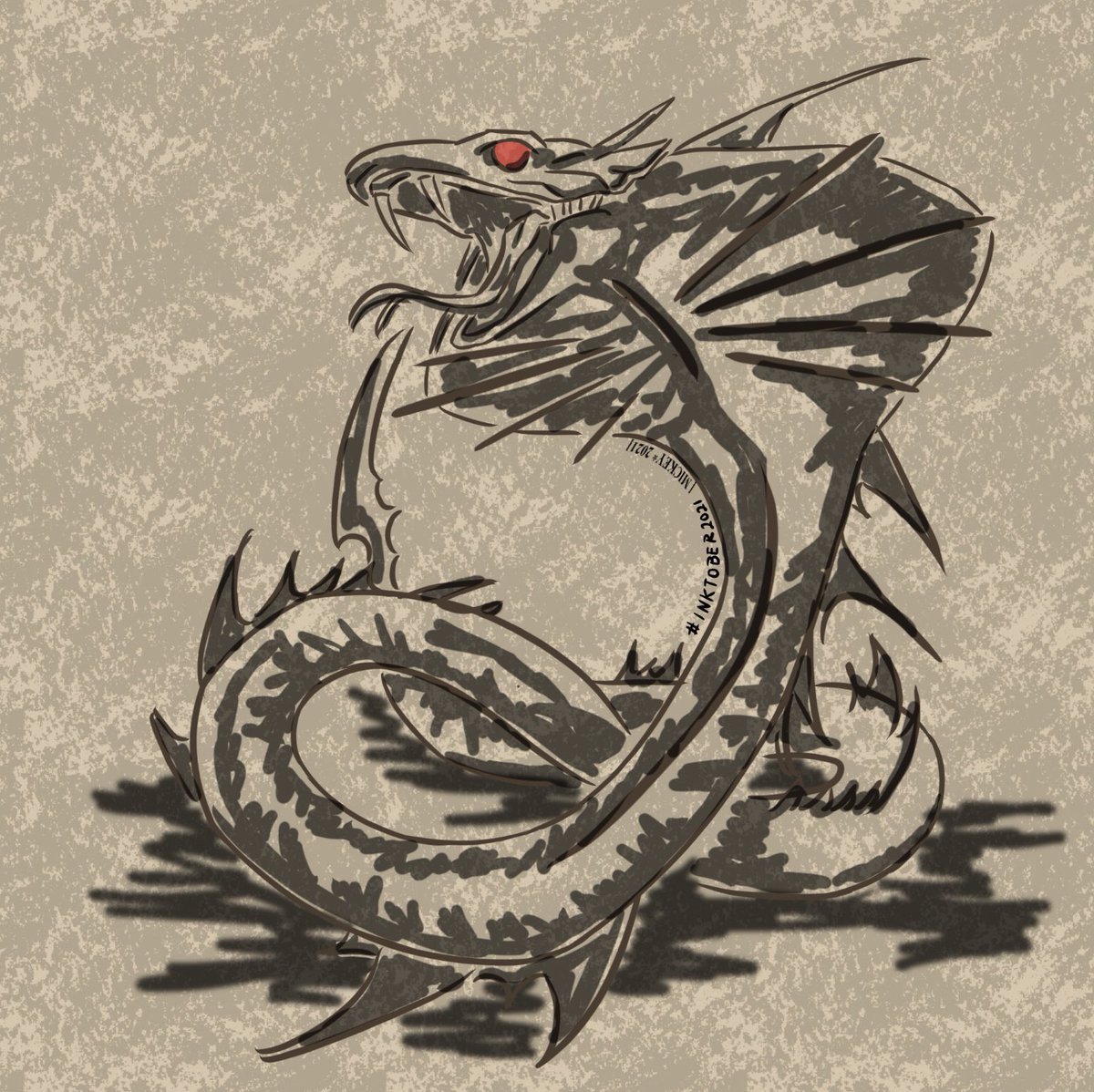 Inktober Egyptian Mythology 🏝☀️🇪🇬🖋Oct 8: Apep. Deity of Chaos. Opposite to Goddess Ma’at. Original form of a massive snake 🐍#inktober #inktober2021 #inktoberprompts #egypt #egyptianmythology #inktoberchallenge #ink #sketch #doodle #characterdesign #concerpdesign