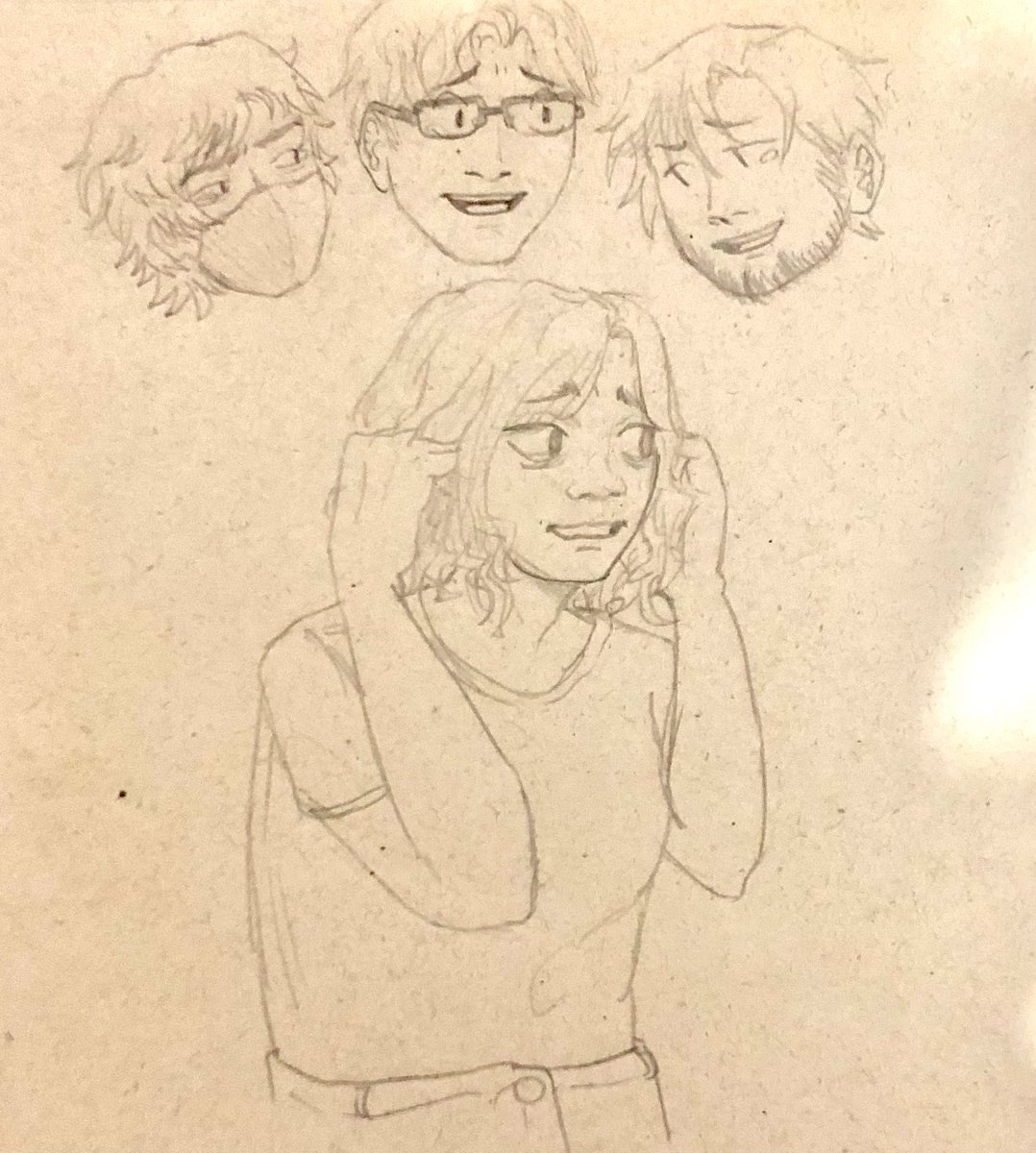 little late sketch i made of the three voices in abigail’s head (aka ranboo, charlie and condi) #TheQuarry #ranboofanart #slimeciclefanart #condifictionfanart