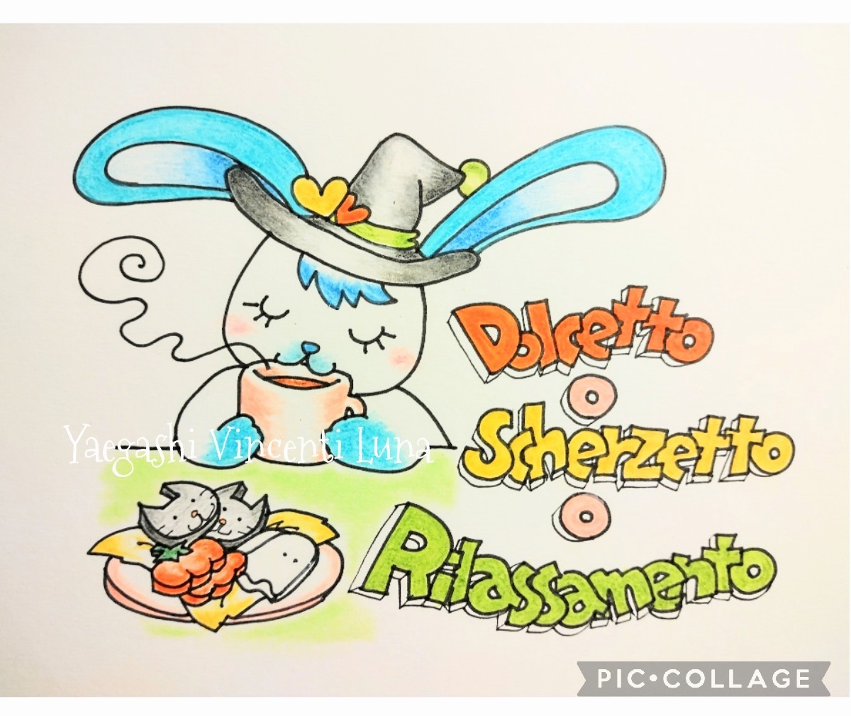 イースターバーニーがハロウィンの ビスケットを味わってま〜す🎶 ナイトメアー・ビフォア・クリスマスの アイデアから発想をひねってみた🎶 #イラスト #手描き #水彩 #色鉛筆 #ハロウィン #うさぎ #イタリア語 #英語 #Halloween #trickortreat #dolcettooscherzetto #illustration #bunny #coniglio