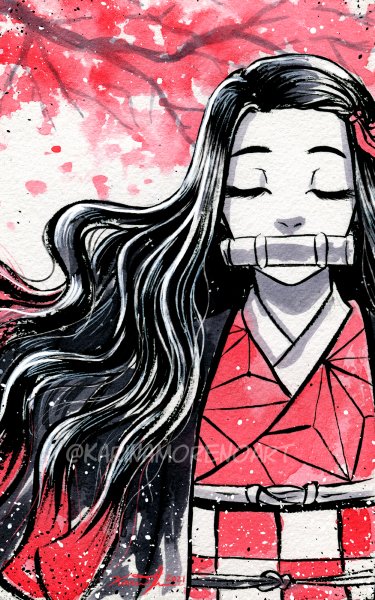 My badge art for the full event pass for @connichiwaAZ ! It was a pleasure to draw Nezuko for the con :) #connichiwa #connichiwa2021 #nezuko #demonslayer #kimetsunoyaiba #watercolor #ink #inkbrush #traditionalart