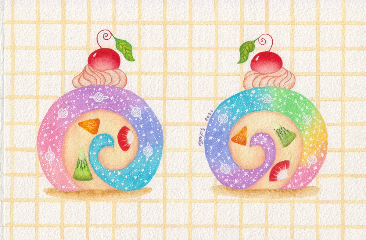 Starry Fruit Rolls🍰🌌🍊🥝🍓🍒 . #watercolor #milkyway #constellations #ArtistOfIndonesia #Artidn #ArtistOnTwitter #zonakaryaid #イラスト