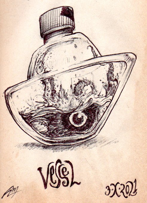#Inktober día 3: #Embarcación / #Contenedor Un #recipiente con forma de barco y un horror de las profundidades contenido en su interior... ⚱️🦑 #Inktober2021 #ilustración #tentaculos #kraken #Vessel #container #creature #Cthulhu