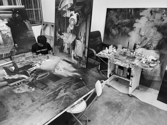 Working time in studio... last year #ContemporaryArt #contempolaryart #painting #paintingoftheday #artwork #artvsartist2021 #paint #painter #artstudio #oilpainting #oil