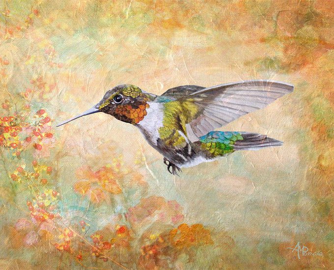 This is my mixed-media painting "Flying To The Berries", based on a photo by Cindy Treger. You can find very nice prints of it here: fineartamerica.com/featured/flyin… #art #arte #kunst #oilpainting #mixedmedia #contemporaryart #birds #birdlife #flyting #hummer #hummingbird #repost