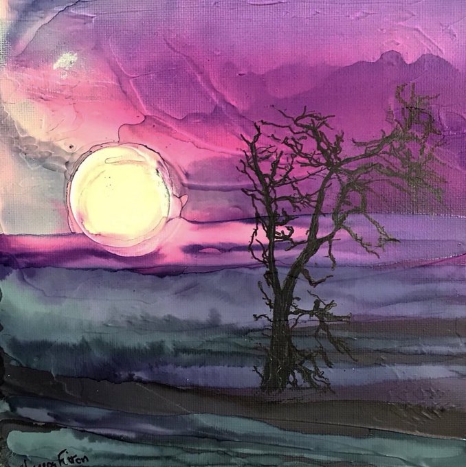 Pink Moon. Alcohol Inks over Acrylic Gesso On Canvas #ArtistOnTwitter #contemporaryart #contemporarypainting #painting