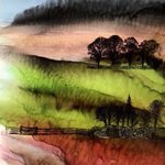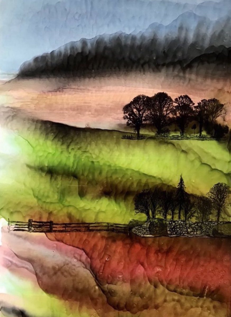 Hillside. Alcohol Inks and Windsor and Newton ink #ArtistOnTwitter #contemporaryart #contemporarypainting #painting