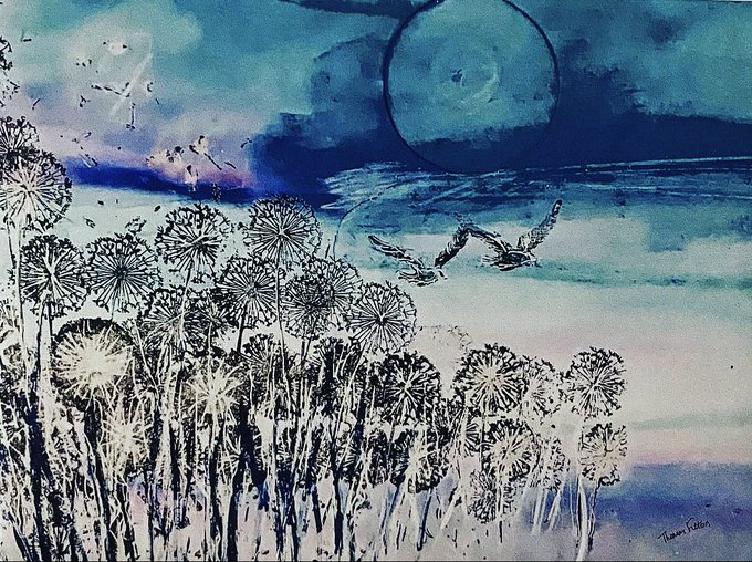 Dandelion Summer On Canvas. Alcohol Inks and Windsor and Newton ink #ArtistOnTwitter #contemporaryart #contemporarypainting #painting