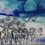 Pale Moon. Alcohol Inks and Windsor and Newton ink #ArtistOnTwitter #contemporaryartist #contemporarypainting #painting