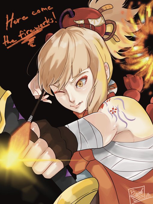 I’m forgetful and forgot about posting this for the yoimiya fanart contest! Please enjoy! “Here comes the fireworks!” - Yoimiya #mihoyo #yoimiya #firework #art #bow #genshinimpact #genshinimpactfanart #fanart #contest #genshin #commissionsopen #procreate
