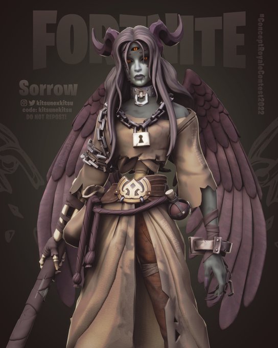 a decomposing deserter cursed by mysterious powers. meet Sorrow - my entry for #ConceptRoyaleContest2022 ⛓ full showcase in the thread! enjoy 🤍 #Fortnite #FortniteArt #contest