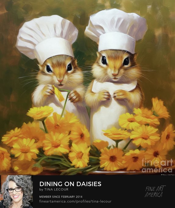 Dining On Daisies...Can Be Purchased Here..tina-lecour.pixels.com/featured/dinin… #animals #cute #chipmunks #wallart #kitchen #chef #cook #restaurant #diner #homedecor #interiordecor #interiordesigner #buyintoart #ayearforart