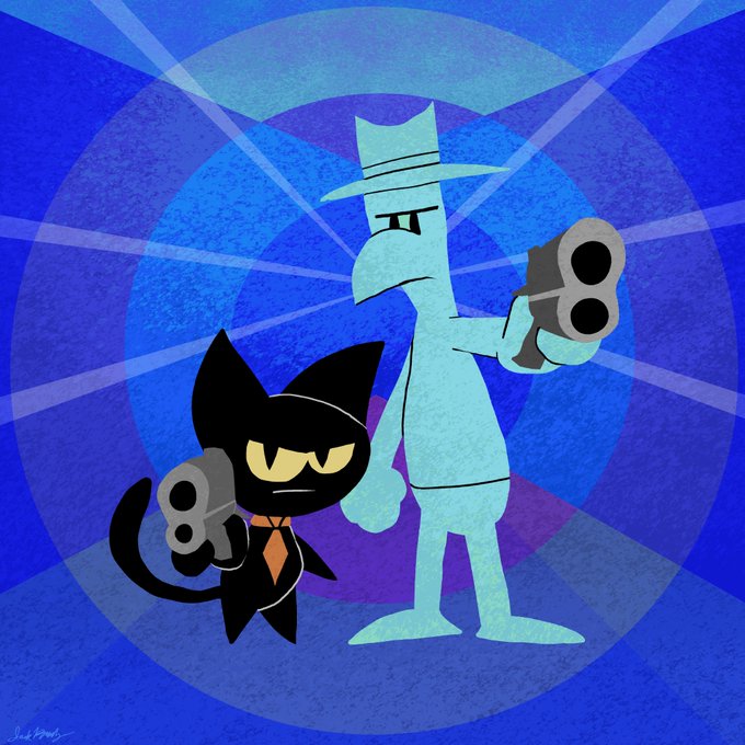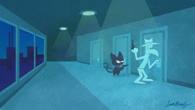 Blanco and Louie answer the call... #digitalart #ArtistOnTwitter #police #cop #blackcat #bird #cat