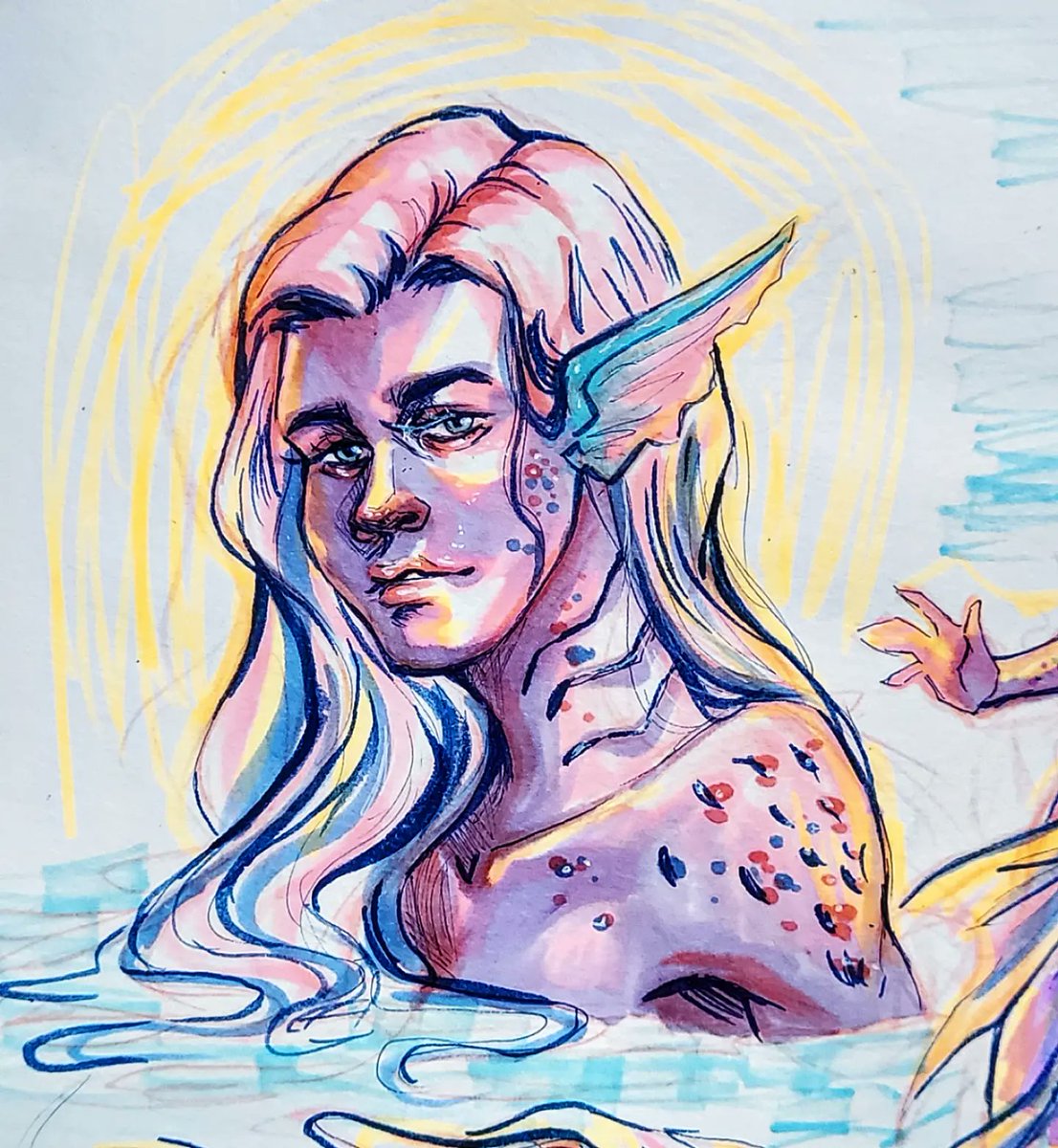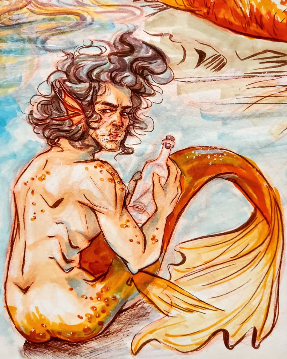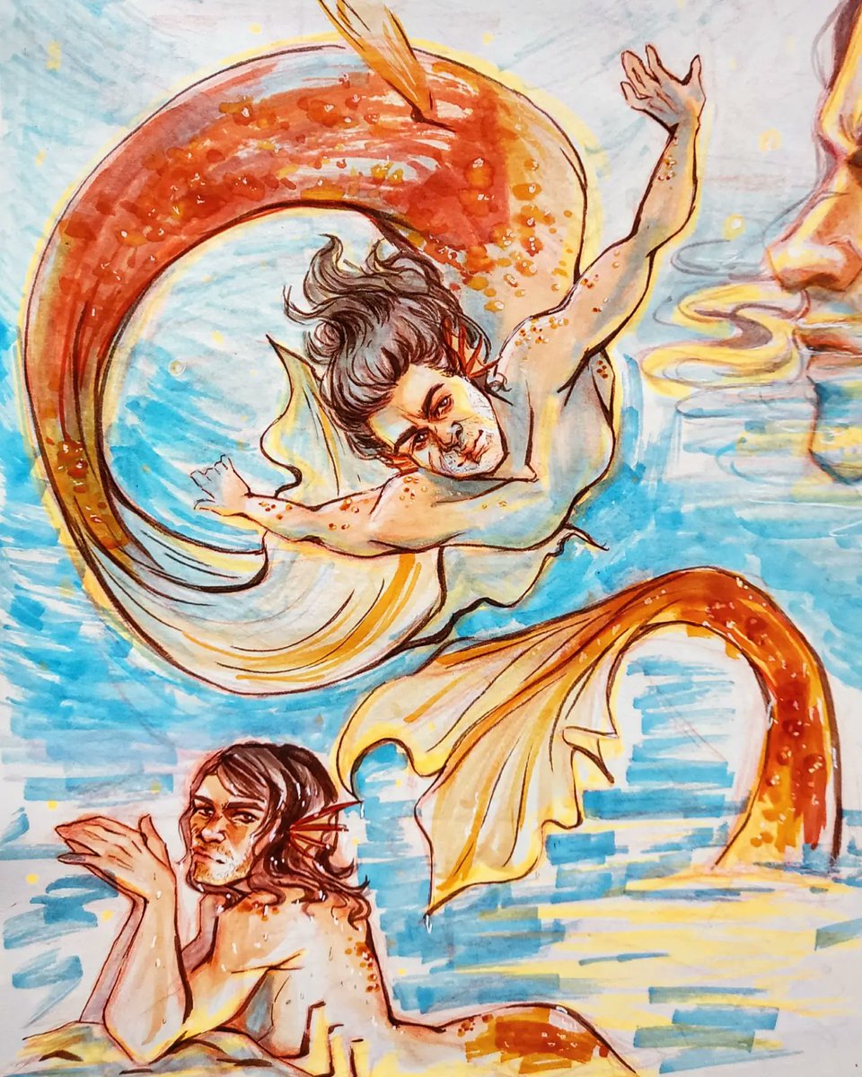Would you lookit that. It's Mermay! #mermay #mermay2022 #merman #johnmarston #reddeadredemption2 #rdr2 #mermanau #copic #copicmarkers #copicdrawing #copicdoodle #traditionalart #traditionaldrawing #blazingsazadraws