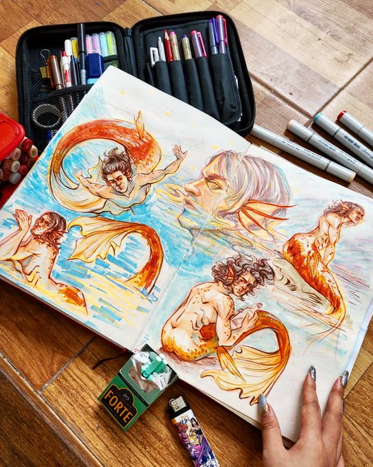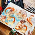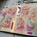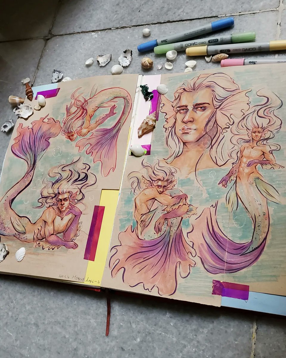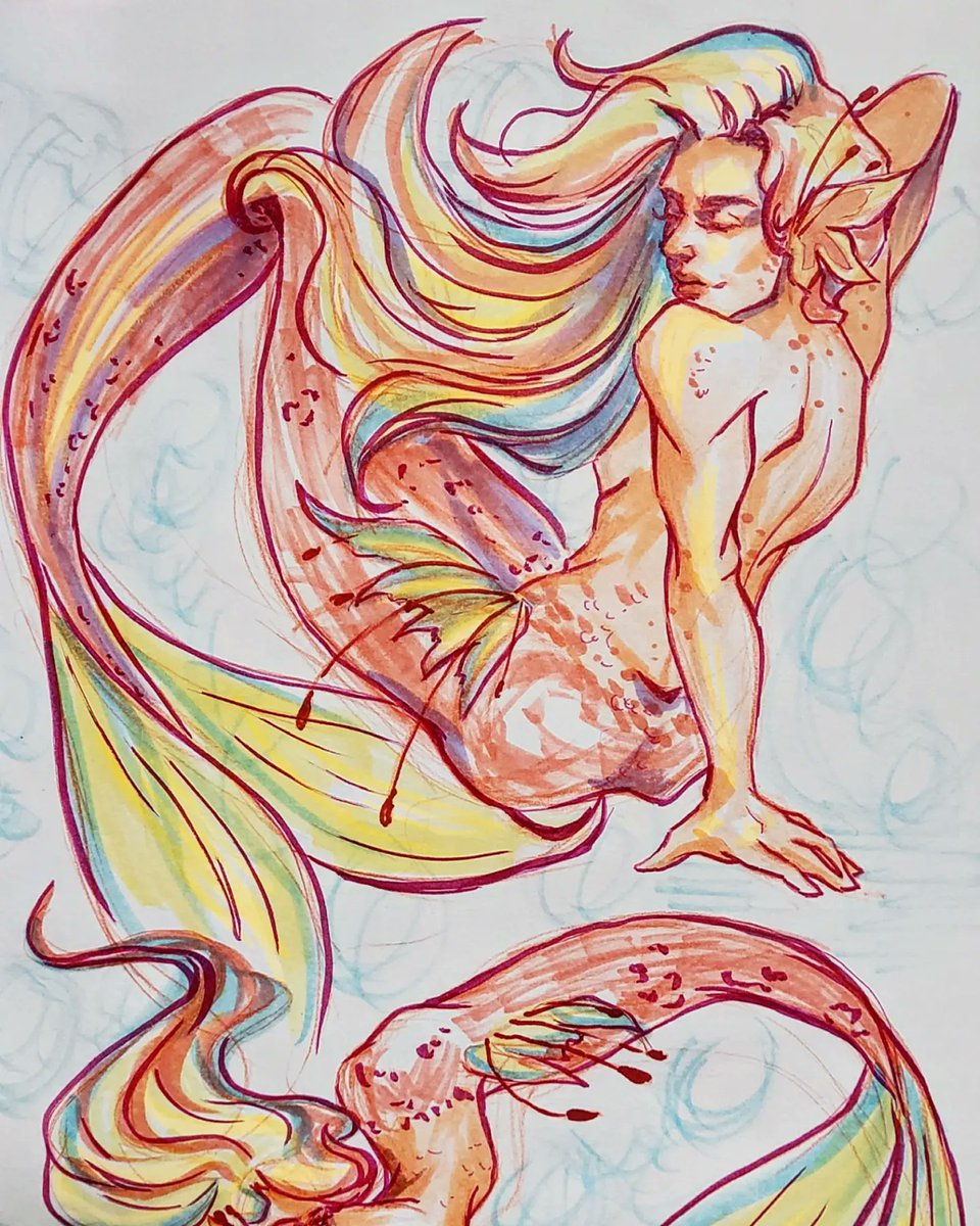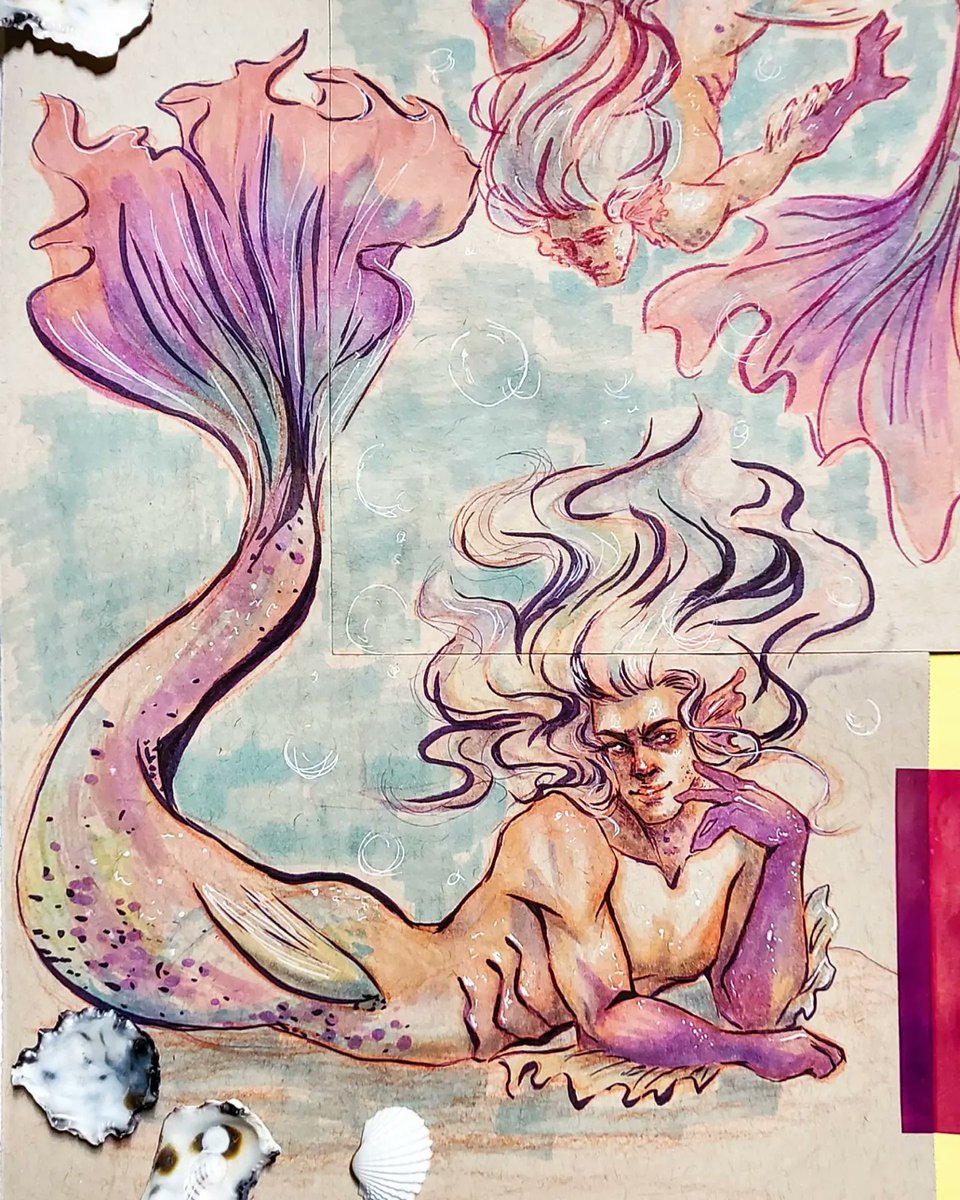 Mermay Day 6 -> 10 🧜♂️🐚 A bit late, but i'm slowly catching up! #mermay #mermay2022 #merman #copic #copicdrawing #copicart #copicmarkers #pastel #pastelmermaid #traditionalart #traditionaldrawing #blazingsazadraws