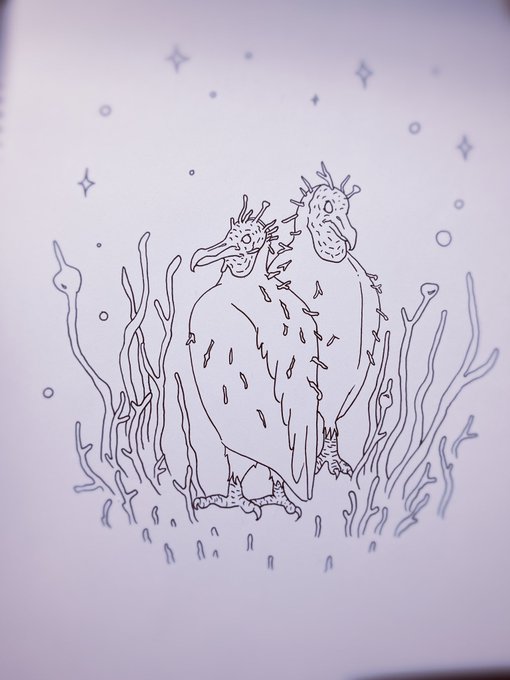 Another line art for #funguary I’m doing line art of all the prompts but it will take a while. This one is #cordyceps with black vultures 🍄✨🪶