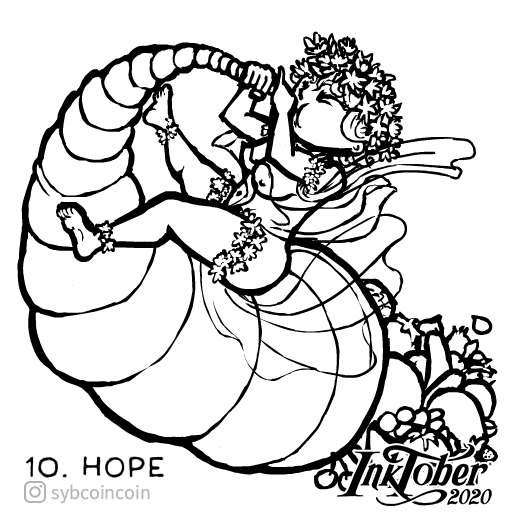 Elpis personnification de l'espoir pour l'#inktober2020 #inktober2020day10 #Inktober2020hope #hope #elpis #greekMythology #Cornucopia #classicalantiquity