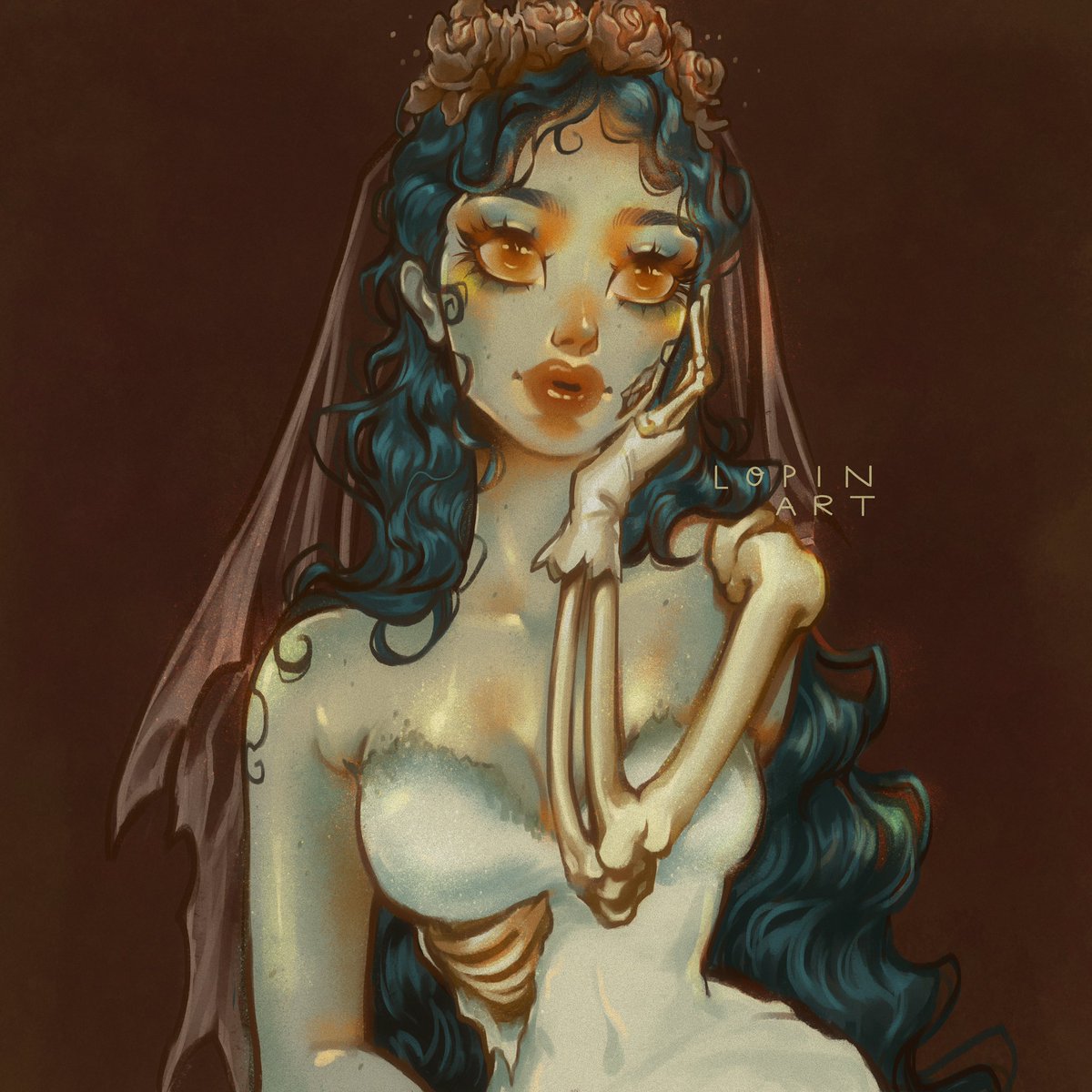 Emily from Corpse Bride 👰♀️💙💀 for #sixhalloweenfanarts2021 ! Inspired by @karolinepietrowski ✨🤎 • Uh i keep forgetting to post here 🙃 #Halloween #sixfanarts #sixfanartschallenge #sixfanart #corpsebride #corpsebridefanart #timburton