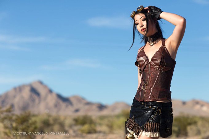 This looks like it could be taken from a J-rock music video with Steampunk themed visuals Dec 8: Steampunk Desert Girl 📸 @mineralblu #cosplayadventcalendar #cosplay #photography