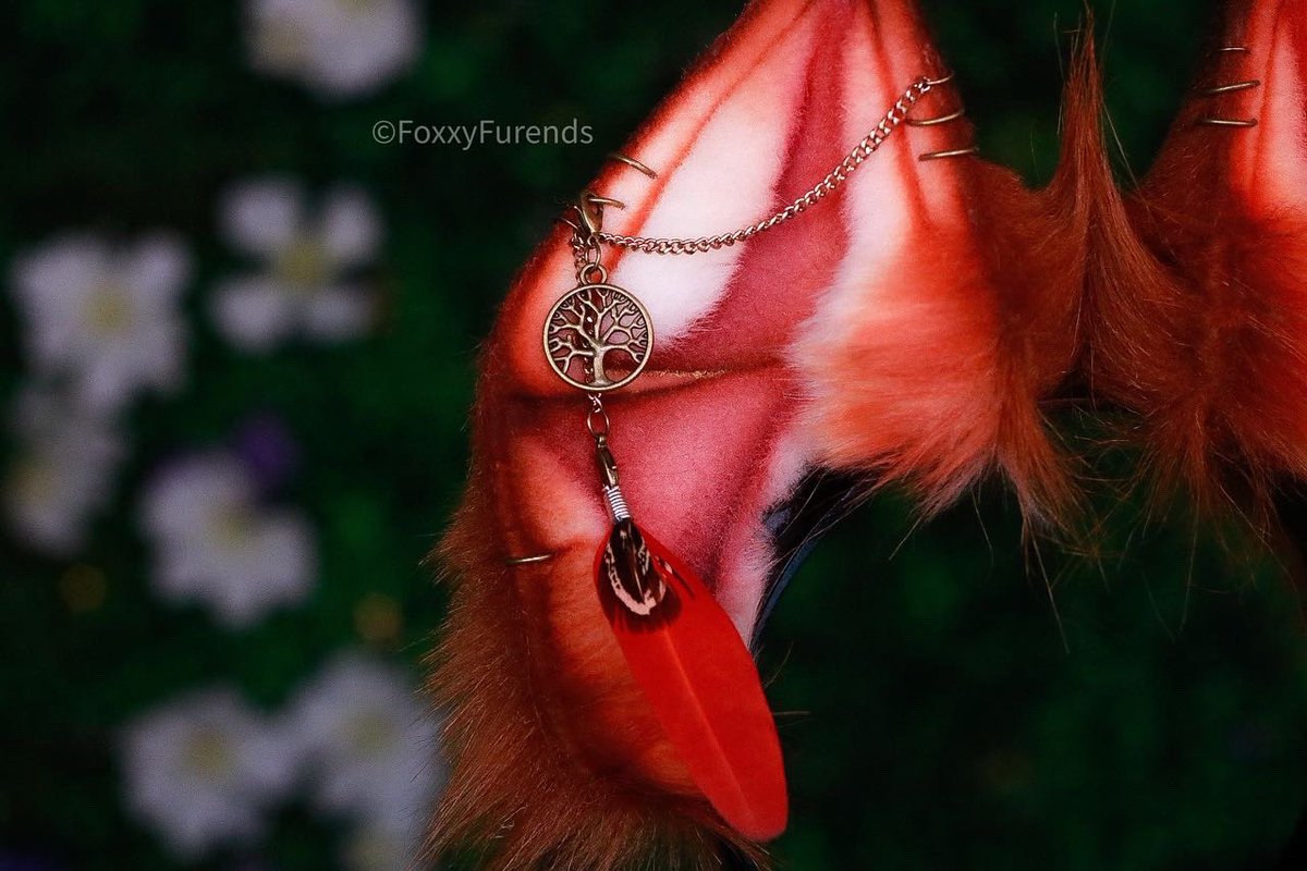 This pair features; removable feather/tree of life charm, realistic detailing, double swavorski crystal rhinestones, bronze hardware with chain, bells to jingle with movement and gorgeous deep ginger luxury faux fur. I love how the blending on this set turned out!😻 #cosplayears