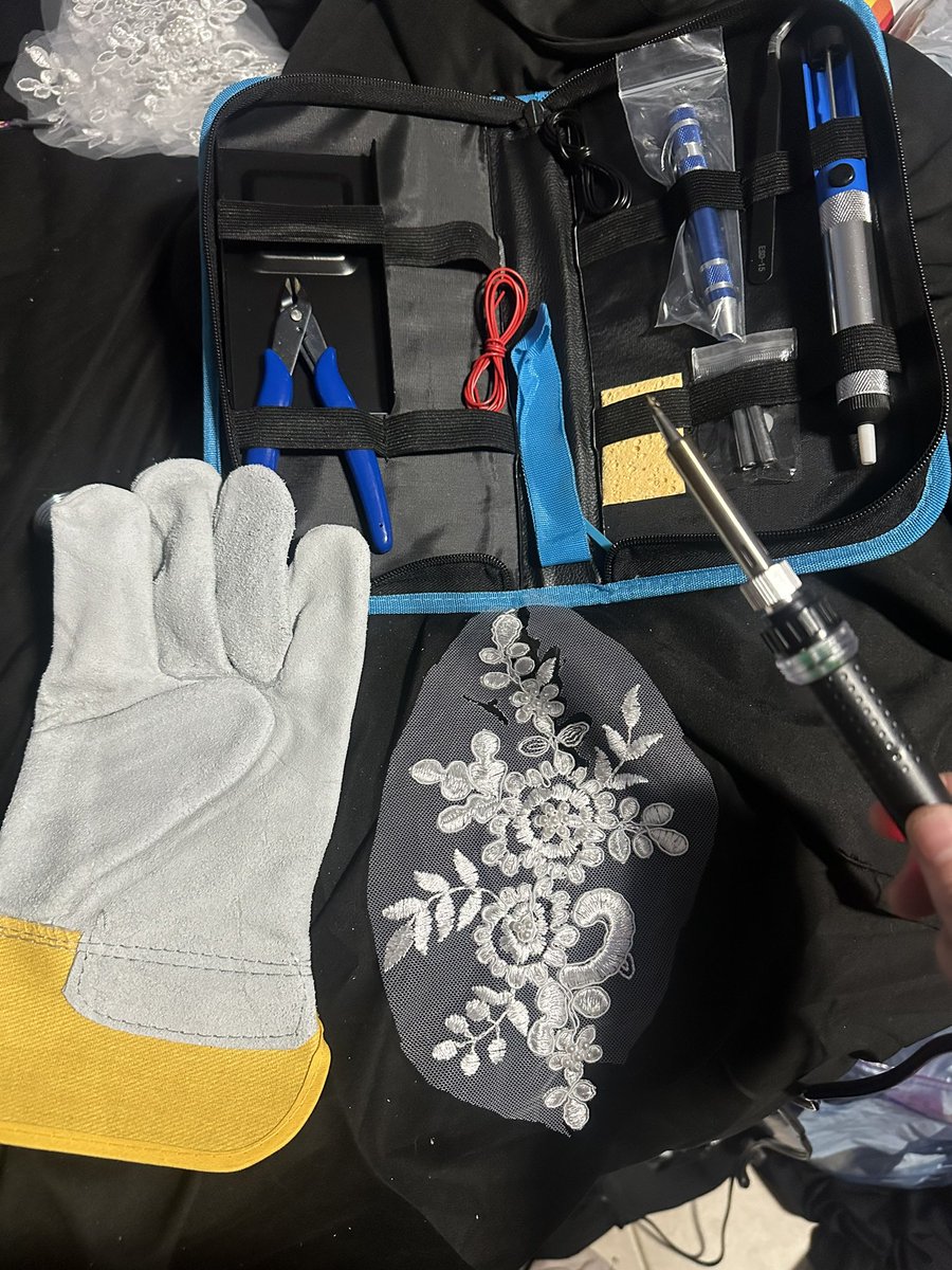 When you get a great remnant at JoAnn’s and realize you can turn it into appliqués (please be safe if you decide to do this!) with a soldering iron #cosplayhack #cosplay