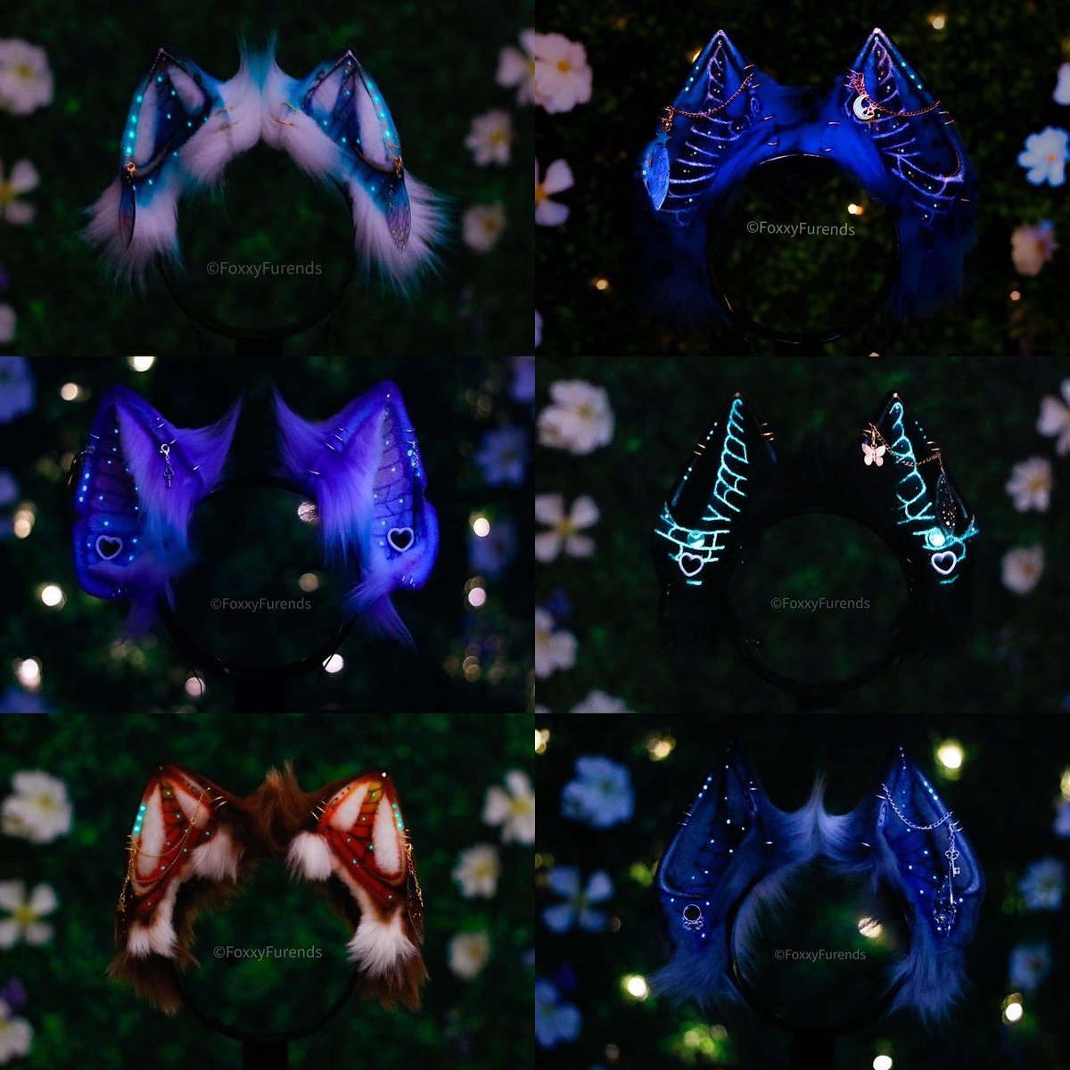 ✨🦋 𝔅𝔦𝔬𝔩𝔲𝔪𝔦𝔫𝔢𝔰𝔠𝔢𝔫𝔱 𝔉𝔞𝔢🦋✨ 1/3 OOAK haul release available for adoption this Monday 29th 7pm EST; FoxxyFurends.com All pairs feature magical glow in the dark markings! They charge with UV for a bright and long lasting glow! #cosplay #furry #costumeears