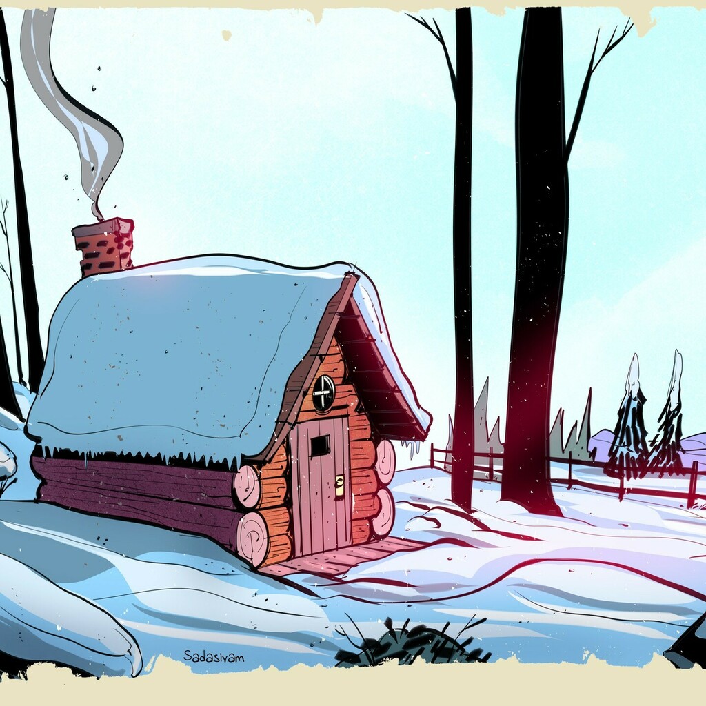 A winter scene (the border effect shown here is on my latest YT video...) #landscape #illustration #winter #cottage #photoshop instagr.am/p/CYPp6E_L6tD/
